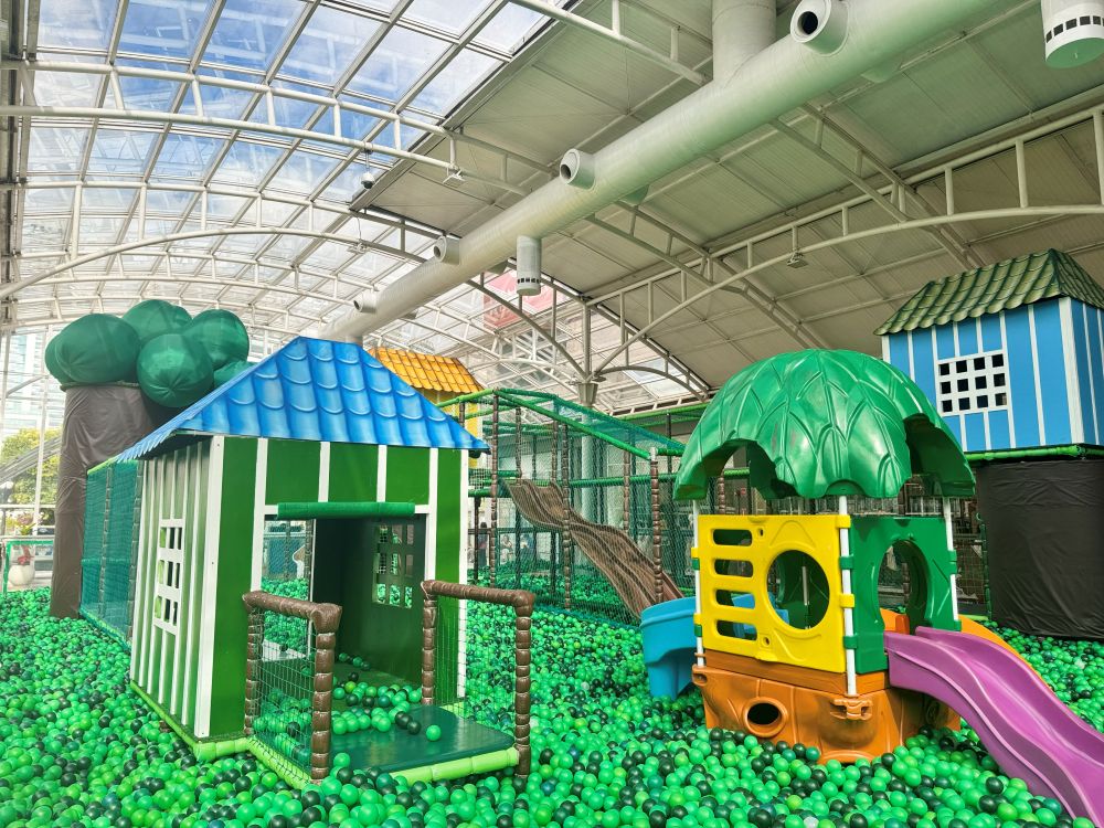 O parque conta com piscina de bolinhas gigante, casa na árvore, camas elásticas, entre outras atrações para crianças de 01 a 12 anos